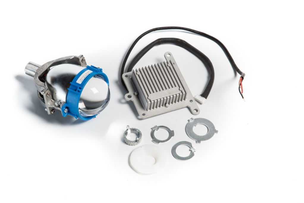 Это комплект деталей, которые устанавливаются в штатные фары автомобиля. В комплект входит ксеноновая лампа, отражатель, металлическая шторка, фокусируемая линза и детали для монтажа. Иногда в набор входят и блоки розжига.