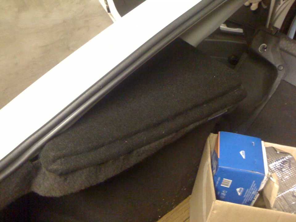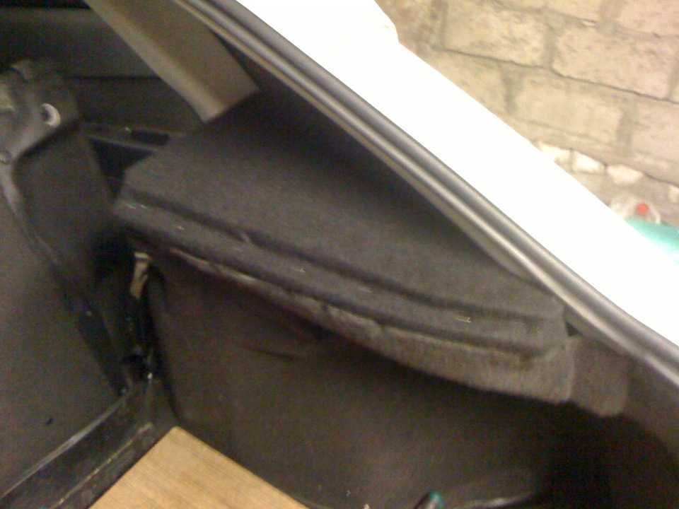 Приступил к работе. Снял полку, боковинки (последние держатся на 4 саморезах — 2 со стороны крышка багажника, 1 по центру боковинки и 1 со стороны седух).