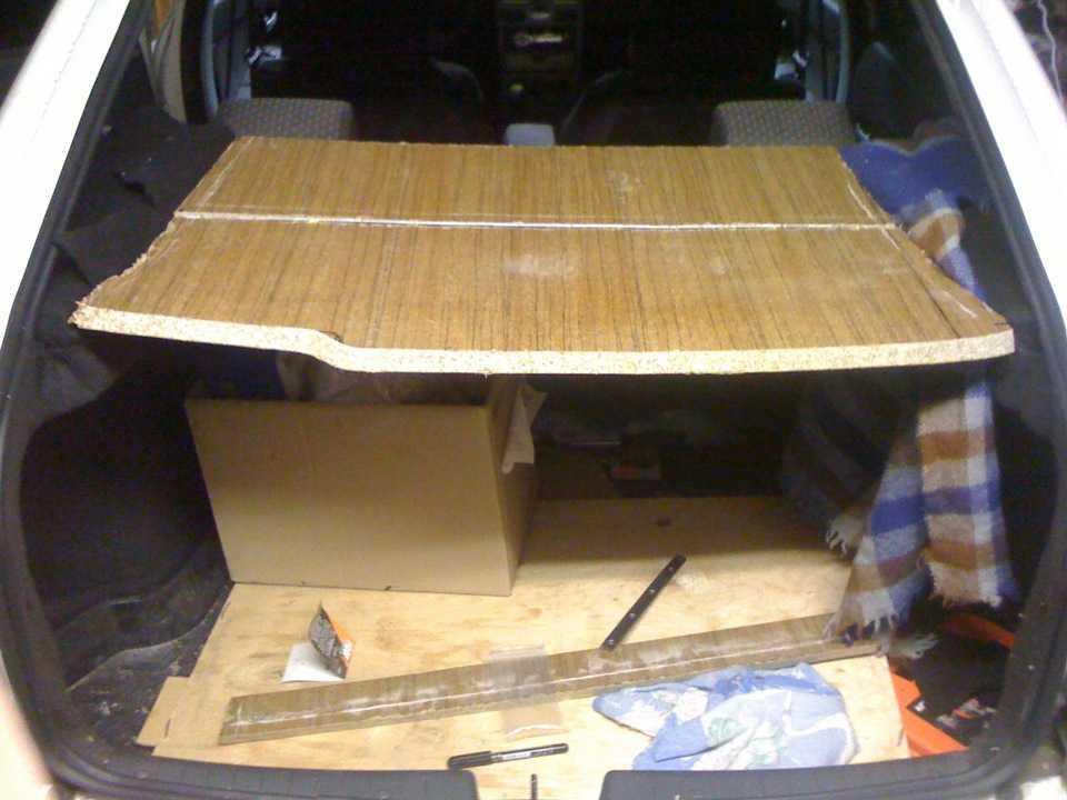 В первую очередь надо продумать, какой именно вы представляете себе будущую полку, как она будет крепиться к корпусу (или к опоре для заднего сиденья), сколько багажного пространства вы под нее отведете, сколько в ней будет уровней (одно- или двухэтажная конструкция) и т.д.