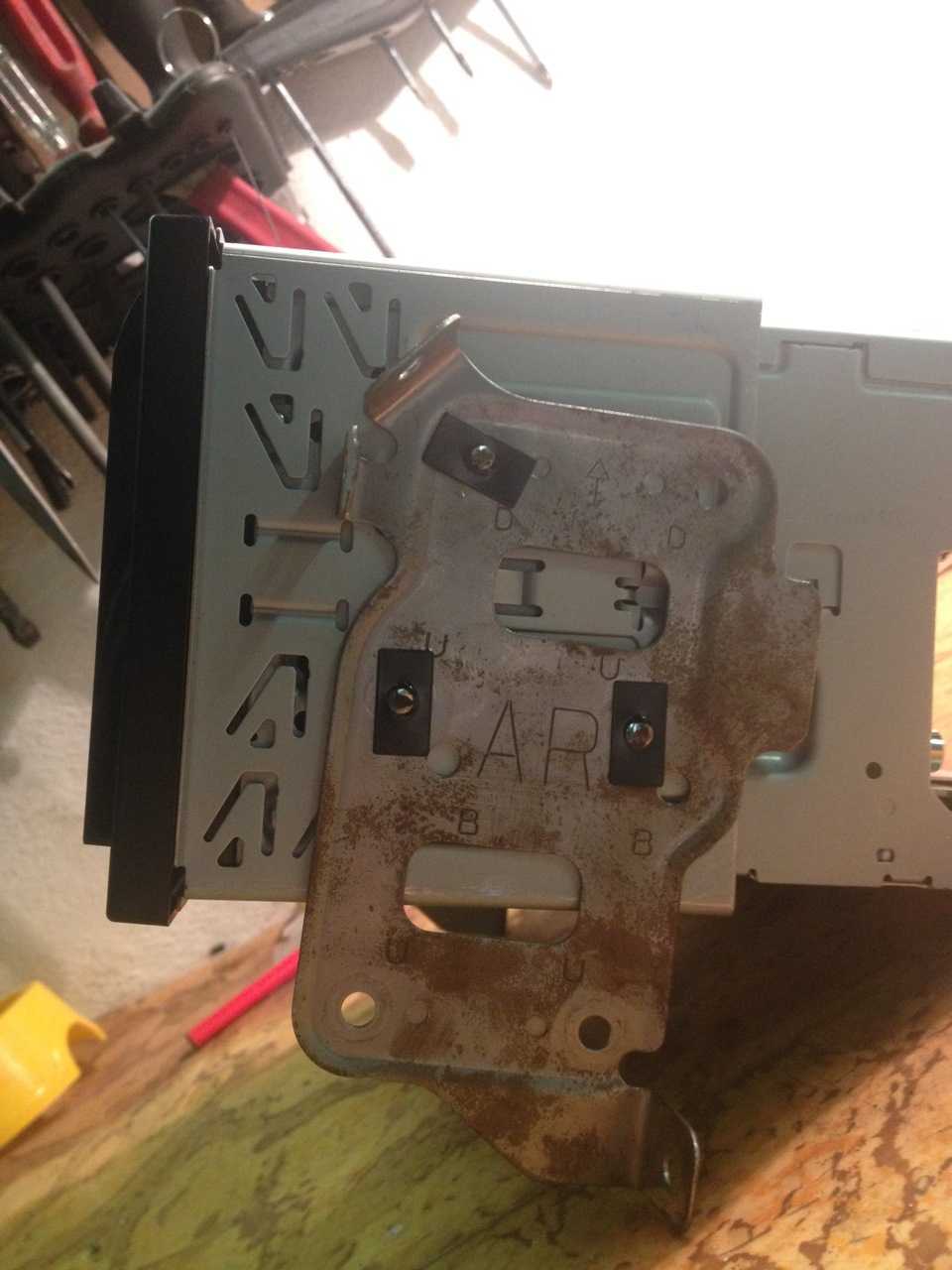 Самое сложное — это подогнать магнитолу к рамке, отверстия в штатном креплении конечно же не совпали с отверстиями магнитолы.Делал так: штатные крепления прикрутил на место, вставил между ними корзину магнитолы, надел рамку и отрегулировал корзину руками, штатные крепления обвел карандашом по корзине.Далее все снял и уже вне машины разметил отверстия в корзине относительно креплений, просверлил.Крепил обычными саморезами, предварительно максимально возможно сточив шляпку, чтобы магнитола заезжала в корзину без помех. Саморезы ввинчивал в специальные штуки из набора по установке динамиков, (не знаю как они называются) и лишнее тоже сточил на наждаке.
