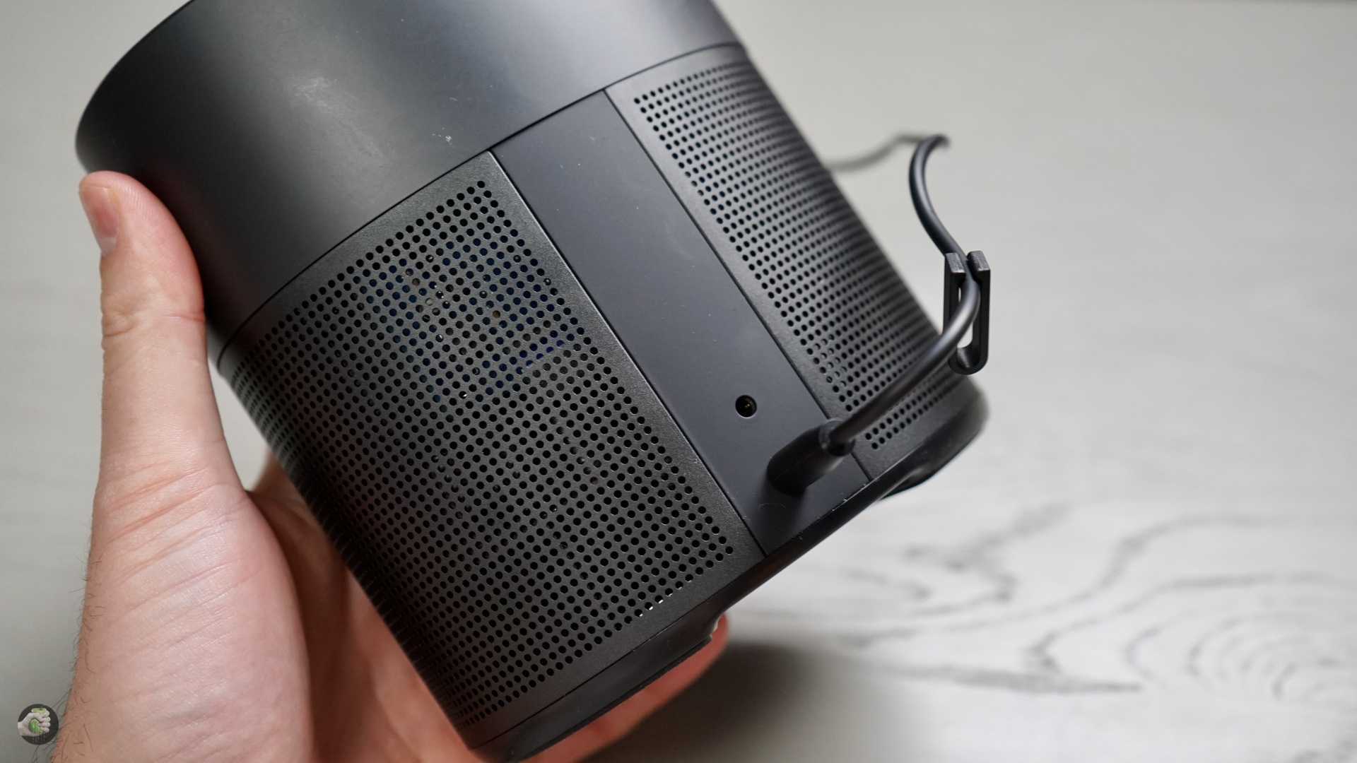 Ну и не могу не заметить, что рядом с Bose Home Speaker 300 классно смотрятся «семисотые» наушники: один цвет, схожие элементы. Классно сделана перфорация на корпусе, сквозь дырочки виден мощный драйвер. Резиновые ножки не дают скользить, на задней части, где разъёмы, вставка из резины