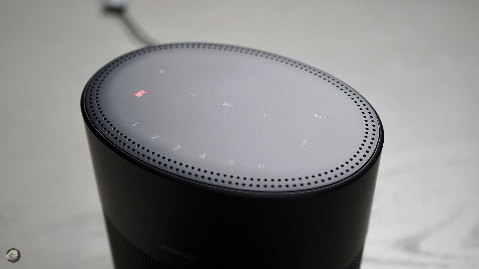 В отличие от Bose Home Speaker 500, тут нет экранчика, но, если честно, я никакой боли не ощутил. Хотите — выбирайте источники звука, нажимая на иконки на верхней части колонки, хотите — пользуйтесь приложением. Тут ведь, кроме AirPlay 2, есть ещё и Bluetooth, и 3,5-мм вход. Если боитесь, что микрофоны в системе используют против вас — их можно отключить физически, для этого есть кнопка прямо на колонке.