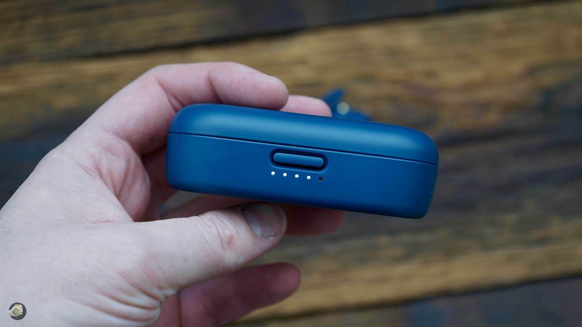 В целом никаких вопросов к дизайну нет. Про цвет я сказал, сборка классная, всё понятно и просто. Спасибо за USB Type-C. Заявленное время работы около 5 часов, две дополнительные зарядки даёт кейс. Не так много по нынешним временам — да и беспроводной зарядки футляра тоже нет. Но и на том спасибо.