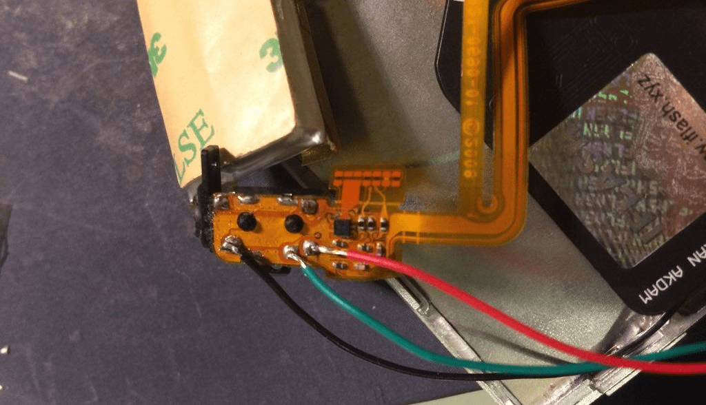 Запитайте передатчик от логической платы плеера и подведите к нему аудиосигнал от 3,5-миллиметрового разъёма. Используйте тонкие провода, чтобы корпус не вспучило, когда вы его закроете обратно.
