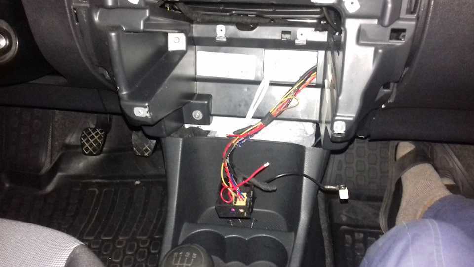 - Смонтировать фильтр в панели приборов автомобиля, прикрепив узел пластиковым хомутом к силовому каркасу. Подключить питание и головное аудиоустройство, а затем проверить работоспособность конструкции.