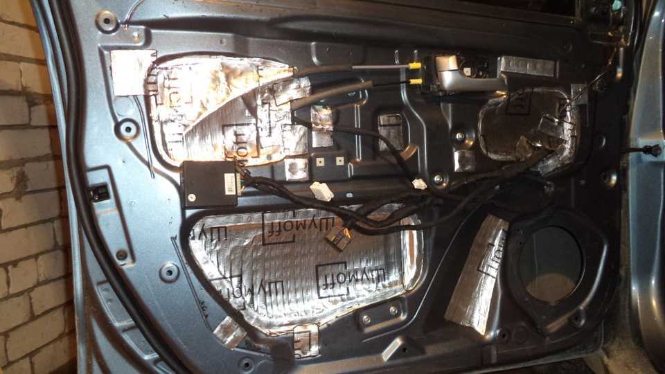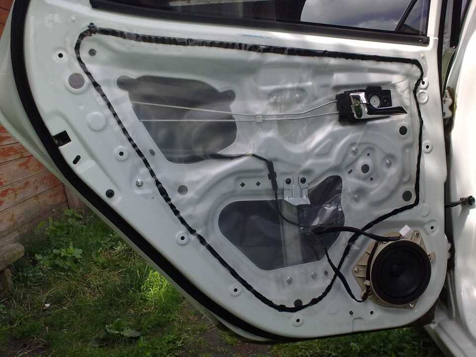 Не забудьте, что в нижней части двери должно остаться свободное место, отведенное для удаления влаги. Если закатать все наглухо, то коррозия дверей не заставит себя долго ждать. А теперь переходим к шумоизоляции: