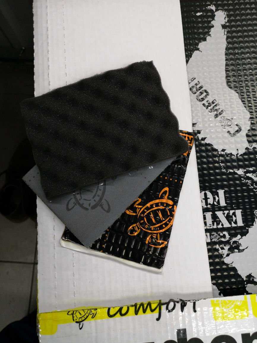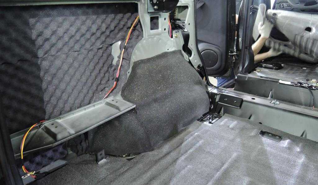 На пол и арки багажника укладывается слой «СТП Аэро», затем — «СТП Барьер». Следите за тем, чтобы в местах крепления ковролина и пластиковых элементов не было слишком толстого слоя шумки.