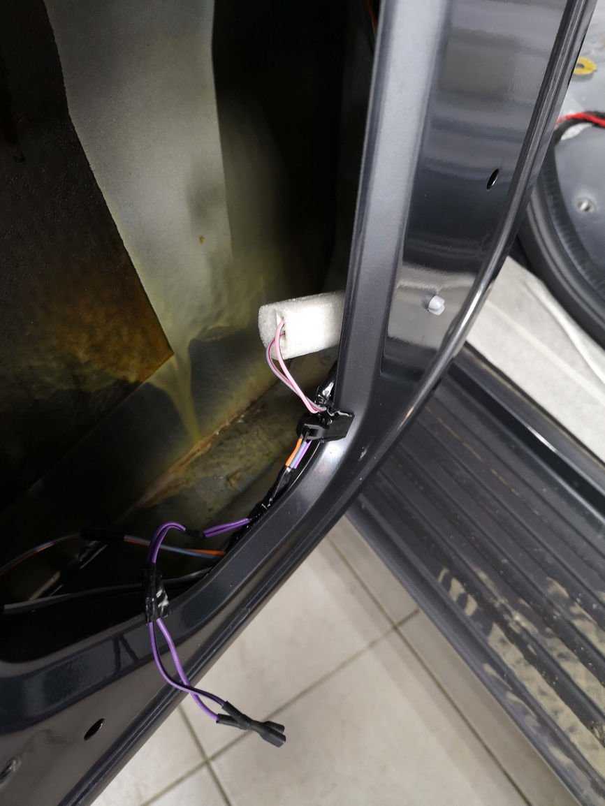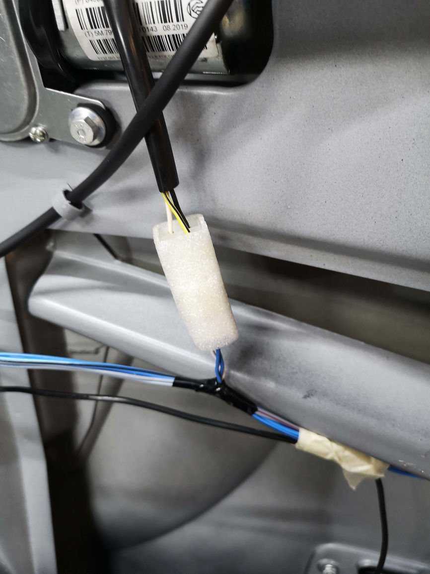 Проводку, которая находится внутри двери, закрепляем и приклеиваем, чтобы она не издавала лишнего шума.