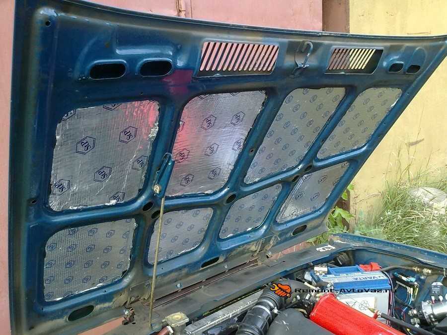 Крышки капота и багажника изолируются аналогично, с той разницей, что “вибропласт” укладывается не по всей площади, а только между ребер жесткости.
