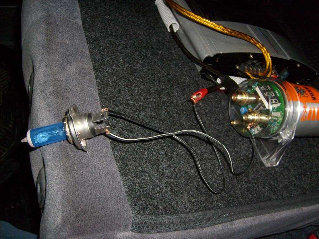 - Если электронная схема в конденсаторе, все же, отсутствует, то рекомендуется изначально подзаряжать элемент 12-вольтовой лампочкой;