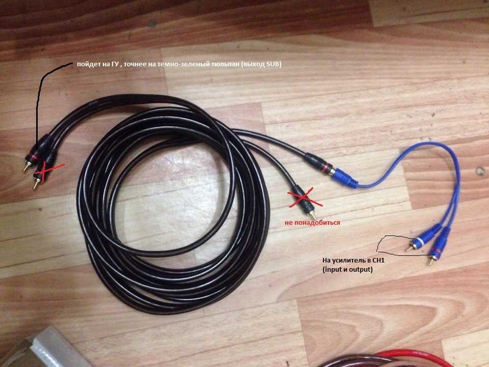 - Качество кабеля будет иметь значение, когда его длина довольно существенная (больше пяти метров, как в автомобиле) — тут гораздо лучше провод с хорошей экранировкой, дабы ваш сабвуфер не издавал заметного фонового гула, вызванного помехами в сети, которые «ловит» на себя плохо экранированный длинный кабель