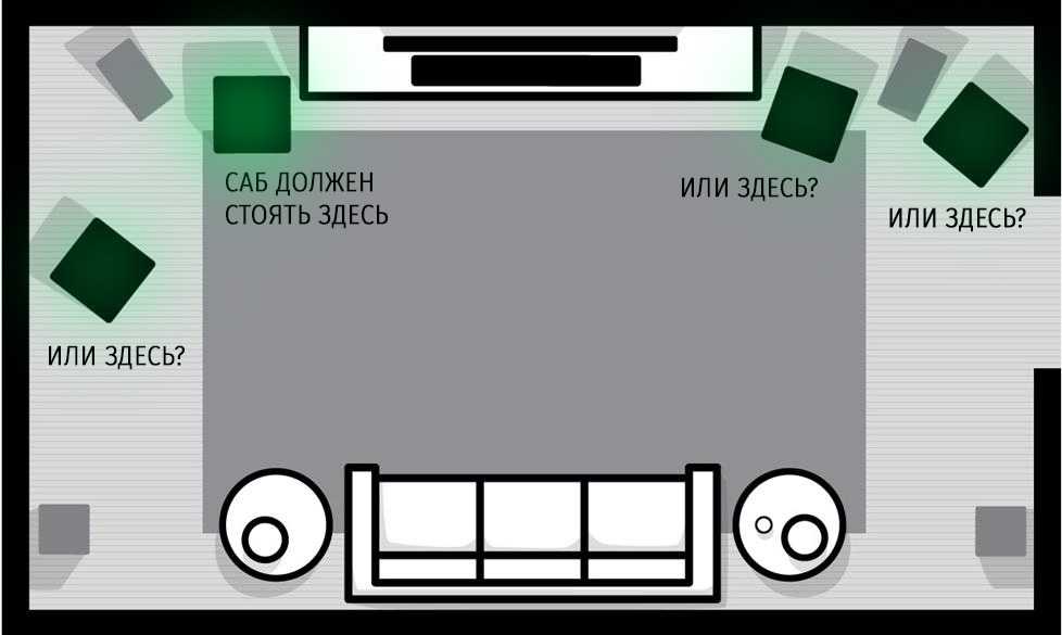 Если у вас есть несколько вариантов размещения, теперь вы готовы выбрать идеальное место. Запустите какую-нибудь музыку с хорошим басом. Затем сядьте на свое основное место и послушайте. Слабые басы? Или, может быть, слишком сильные?