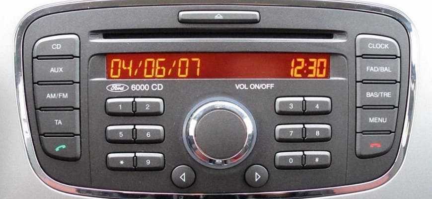 Штатная магнитола Форд Фокус 2 6000CD включается отдельной кнопкой, допускается прослушивание музыки при отключенном зажигании. Встроенный таймер автоматически выключит устройство через 60 минут работы. Корректировка громкости воспроизведения производится вращением рукоятки, расположенной в центре фронтальной панели магнитолы.