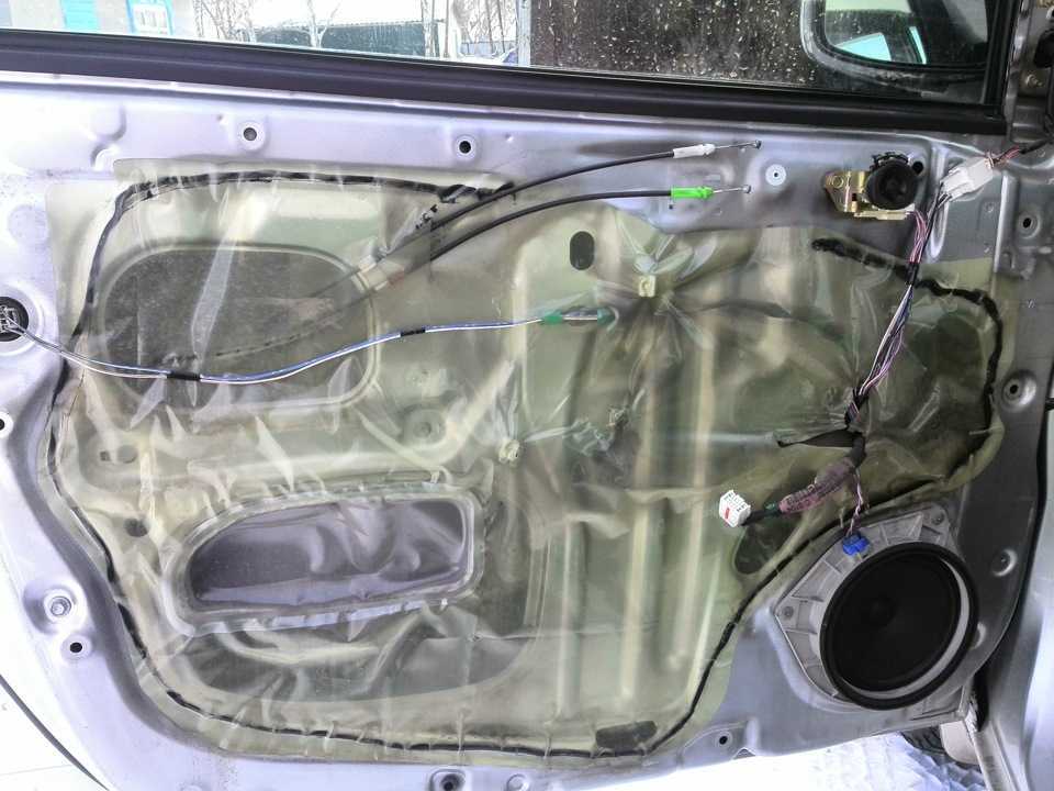 Двери, несмотря на их небольшую (по сравнению с полом) площадь, наиболее трудно оклеивать ввиду труднодоступности поверхности. Поэтому изготовление шаблонов в этом случае является необходимостью — подгонять материал «по месту» очень неудобно. Если проклеить внутренние поверхности авто только пористыми материалами, то звукопоглощающий эффект будет мизерным. Гораздо важнее нанесение виброгасящих покрытий. При прижимании материала к поверхности следует быть осторожным – приложение чрезмерного усилия может вызвать деформацию поверхности. Использование жидкой шумоизоляции в этом случае даст наилучший результат. Оклеивание обшивок дверей изнутри практически ничего не даст в плане звукоизоляции. Гораздо важнее закрыть проёмы во внутренних поверхностях дверей и оклеить тонким прокладочным покрытием тяги замков, жгуты проводов, зафиксировать колодки электрических разъёмов.
