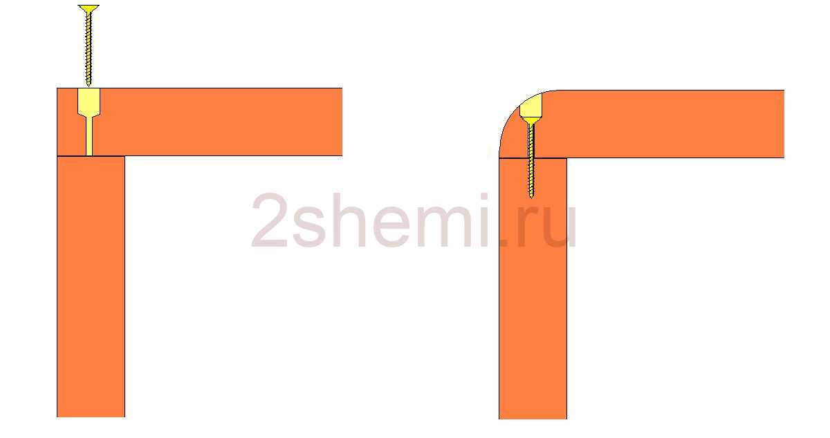 Помните, что элемент, который прикручивается к другому, должен иметь отверстия для шурупов (сверло 3-4 мм), головка винта должна быть спрятана под поверхностью на около 4 мм, особенно по краям колонки, которые будут закруглены, поэтому следует дополнительно сверлить фаску с помощью сверла 6 мм с ограничителем глубины сверления, установленным на 4 мм.