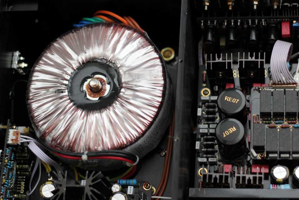 Три трансформатора R-core (суммарная мощность 195 Ватт) обеспечивают раздельное питание для цифровой части, правого и левого каналов.