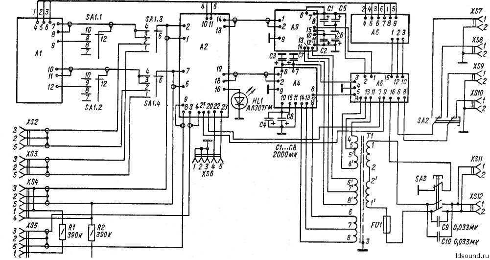 Для увеличения мощности нужно заменить блоки УМЗЧ А3, А4 (схема 1) на более мощные. Это могут быть схемы УНЧ на транзисторах или микросхемах. В этом случае нужно также заменить: