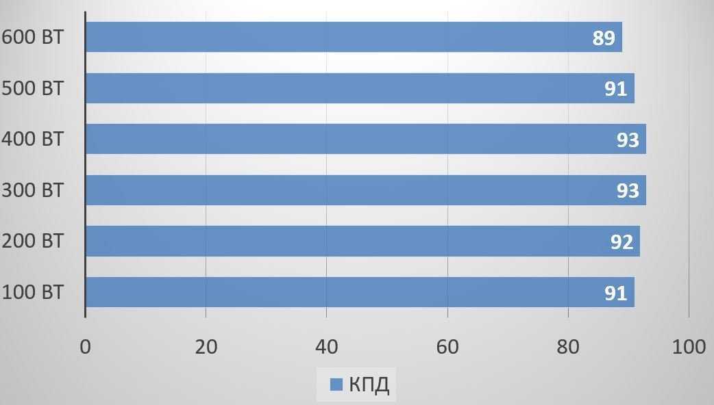 Уровень КПД соответствует стандарту для сети 115 В: 90, 92 90% при нагрузке, соответствующей 20, 50 и 100%.