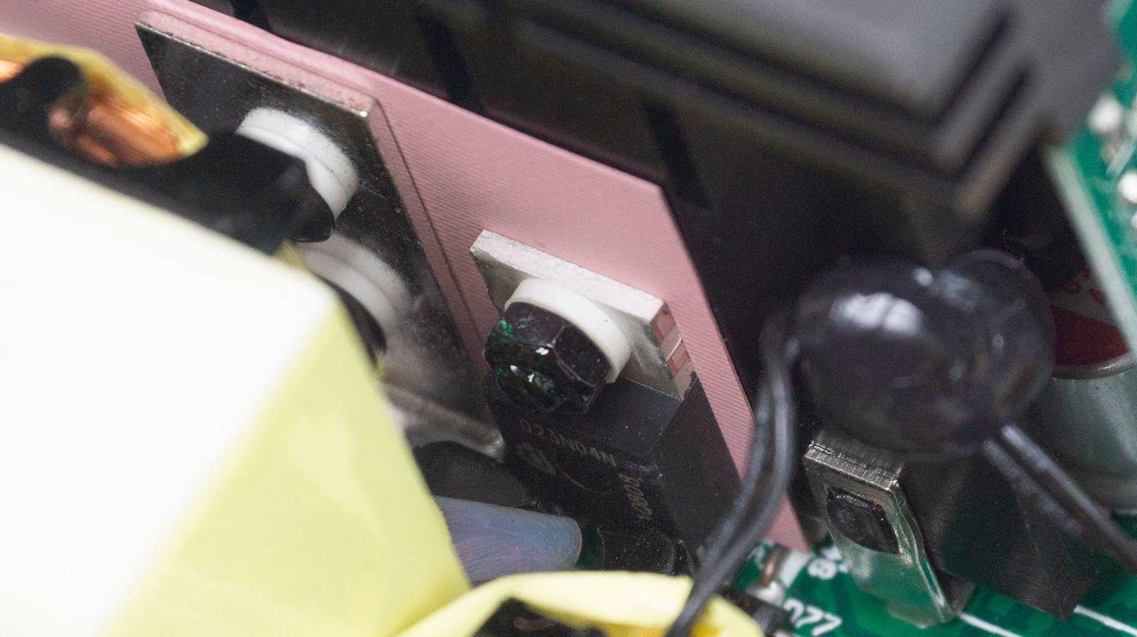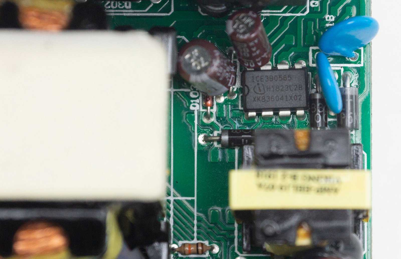 На основной плате распаян полноценный EMI-фильтр: три Х-конденсатора, четыре Y-конденсатора и два дросселя. Предохранитель имеется, а вот варистора мы не обнаружили, что довольно странно для подобного исполнения.