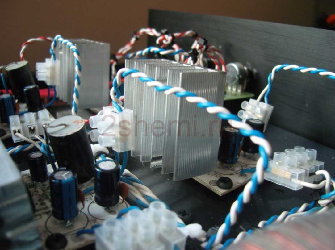 Что касается мощности, даже не пытались её точно измерять на резисторе, так как мощности для домашних дел вполне достаточно. А если кому-то нужно более 100 Вт на канал, то это уже транзисторы. Или 200 – 250 Вт при 8 Ом может быть получено от гибридной микросхемы STK4231 в мостовом включении.