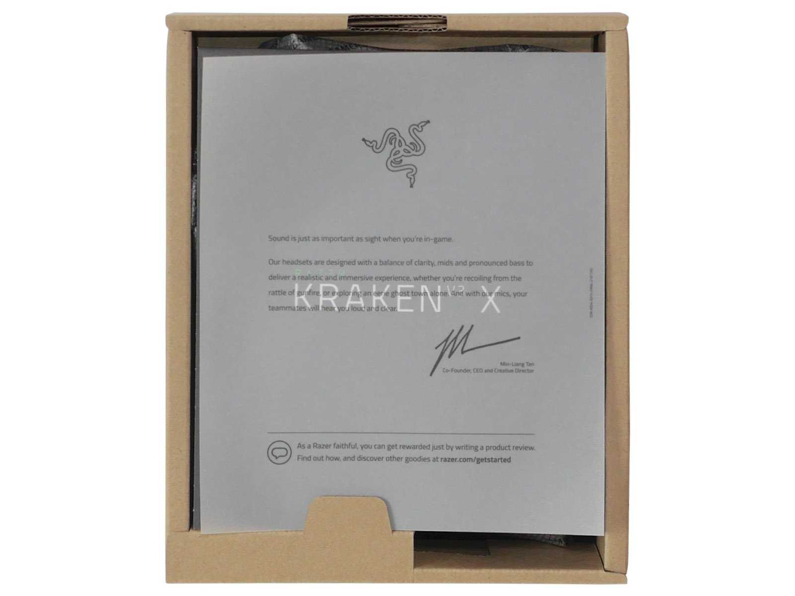 Внутри яркой наружной упаковки размещено плотное картонное ложе, в котором покоится само устройство в мягком пакете с девизом «for gamers by gamers», накрытое инструкцией и традиционным письмом руководства компании с обращением к покупателю.