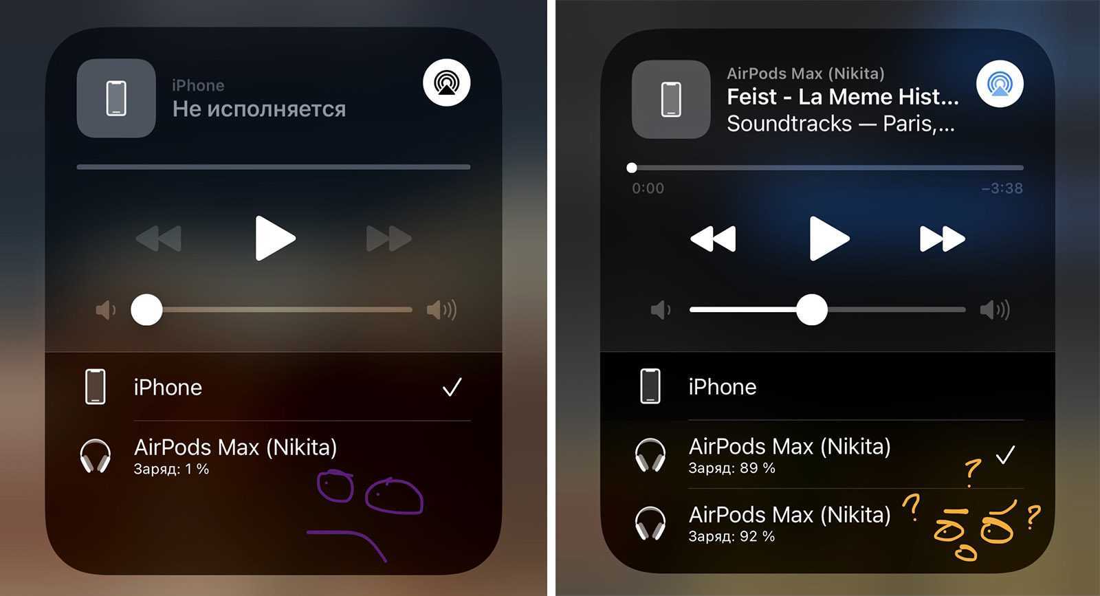 Минус 70% заряда за ночь, дублирующиеся наушники – это автопереключение так работает у меня. И не только на Max, а вообще любых AirPods.