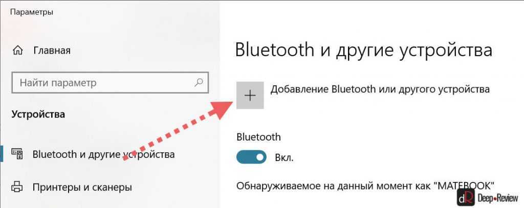 В настройках Bluetooth необходимо нажать кнопку Добавление Bluetooth или другого устройства: