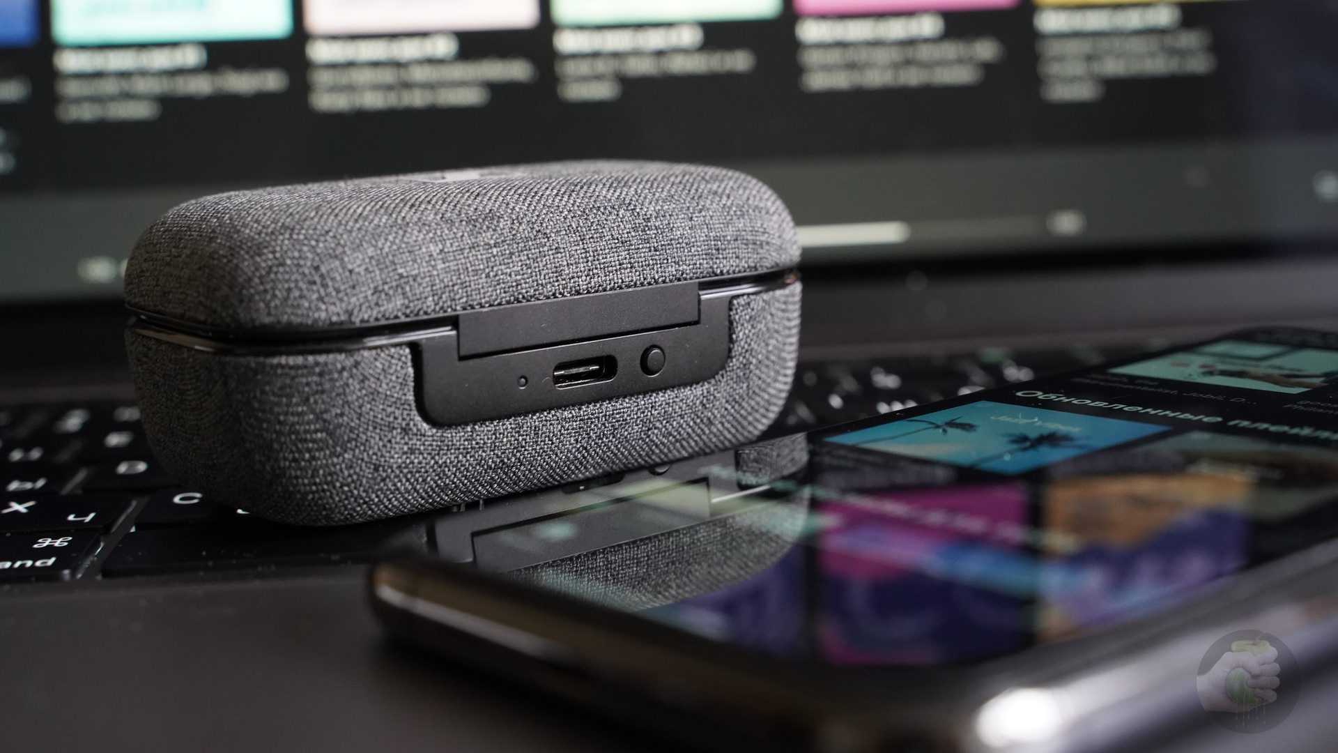 Начнём с чехла. Он заряжается через USB Type-C, кабель прилагается в комплекте. Чехол полностью заряжает наушники три раза, общее время автономной работы составляет около 28 часов. Из приятных моментов отмечу быструю зарядку, когда за десять минут в чехле наушники заряжаются на полтора часа работы. Полный процесс зарядки занимает полтора часа.