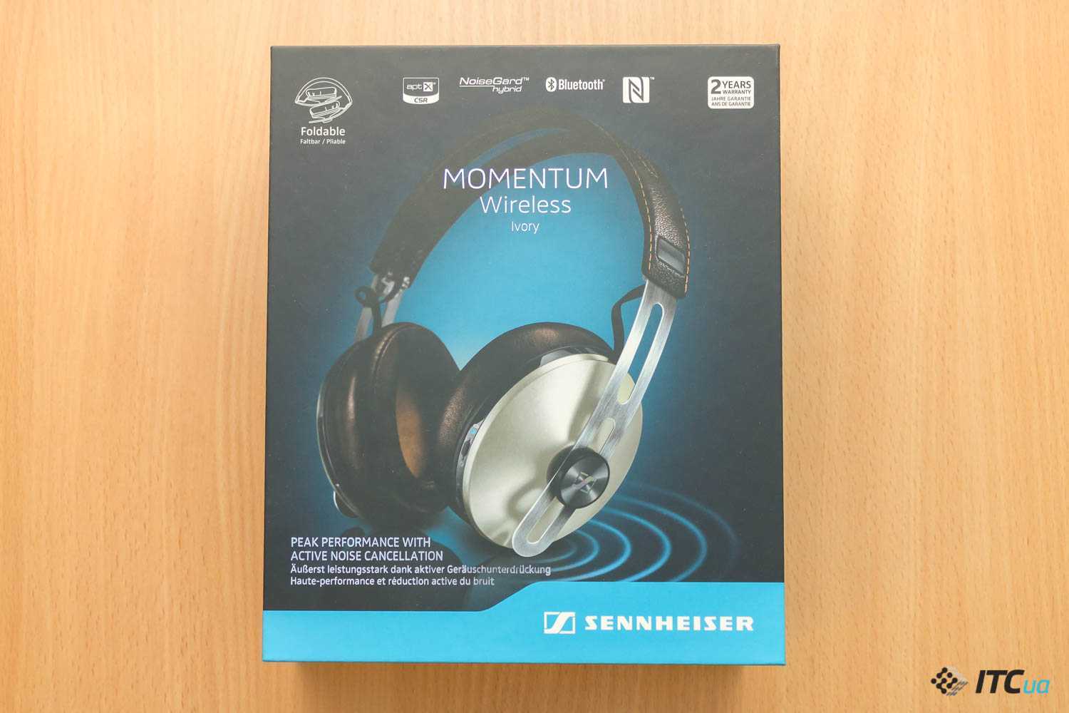 Когда мы берём в руки упаковку с наушниками Momentum Wireless, чувствуем, что имеем дело с продуктом высшего класса. Упаковка изготовлена из твёрдого картона, на ней описаны все наиболее важные особенности устройства. Внутренняя часть заполнена мягкой губкой, не специально вам будет сложно повредить наушники во время транспортировки.