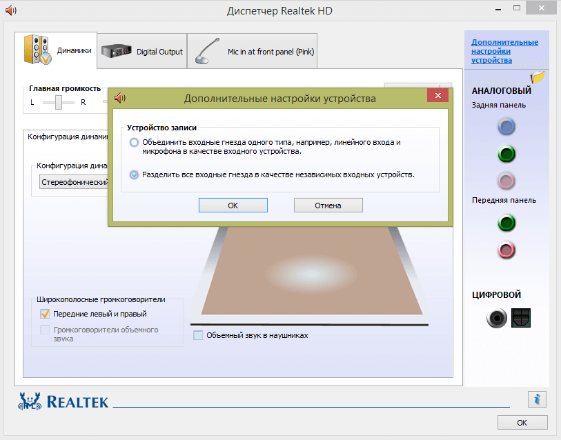 Использование диспетчера Realtek HD