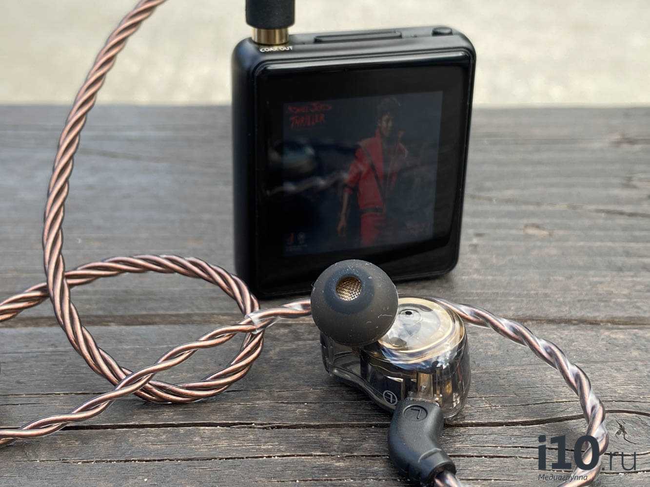 FiiO F9 — тяжеловес по сравнению с остальными. В этих гибридных наушниках частоты разделяются на разные излучатели: низкие идут на динамический, а средние и высокие — на два арматурных. Очень круто звучат даже в паре с лютым Hi-Fi премиумом.