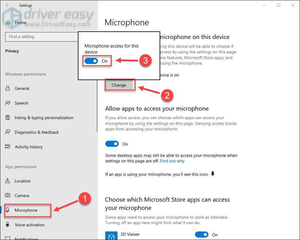 Если вы ограничили доступ к микрофону определенному приложению, микрофон Kotion Each G2000 не будет работать в Windows 10 для этого приложения. Таким образом, выполните приведенные ниже инструкции, чтобы разрешить приложениям доступ к микрофону.