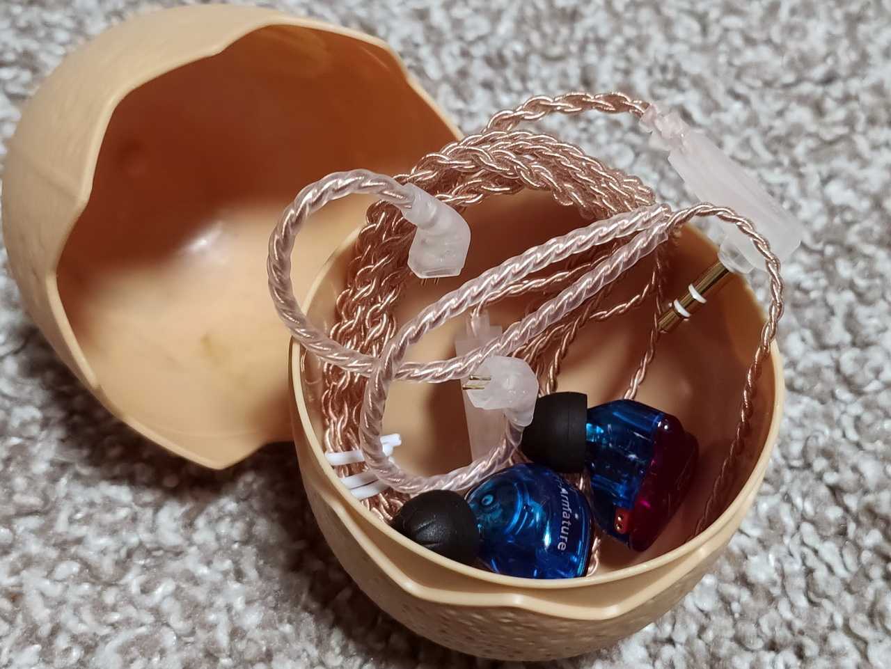 Доставили посылку быстро, за двадцать дней до Санкт-Петербурга. Товар прислали в симпатичной коробочке, внутри которой лежал стандартный кабель, а также пакетик с дополнительными амбушюрами особой формы, которая обеспечивает, по заявлению производителя, лучшую шумоизоляцию. Обе гарнитуры и серебряный провод положили отдельно.