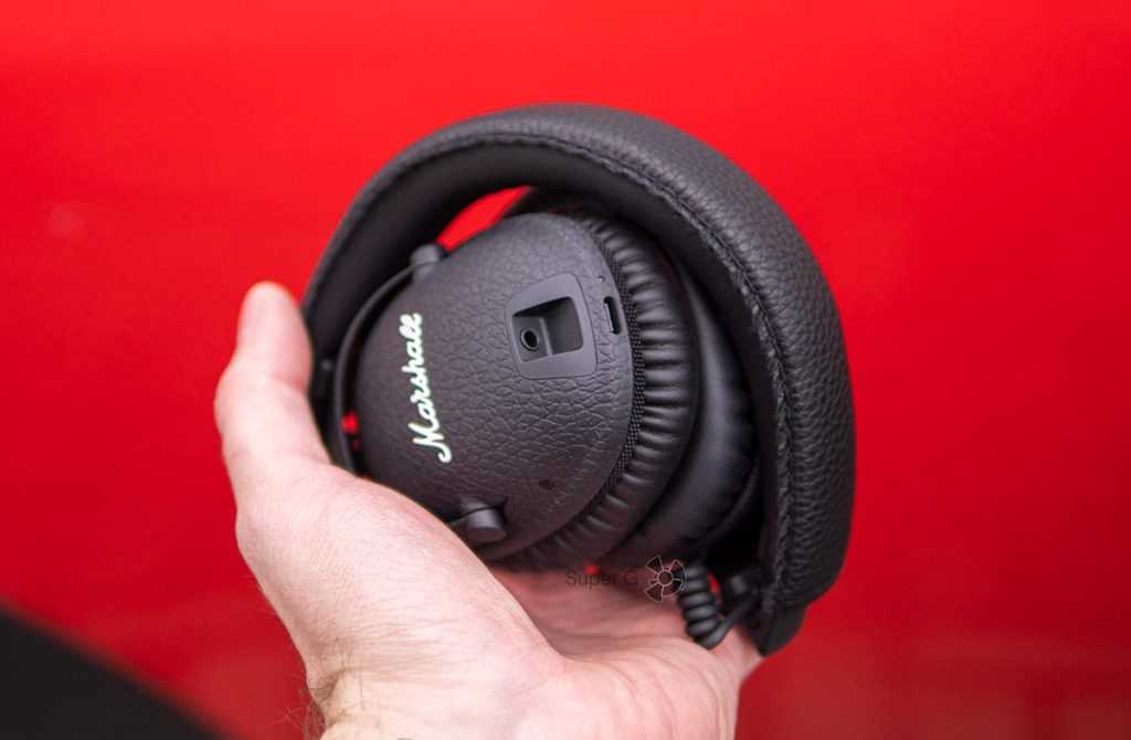 На правой чашечке уха находится разнонаправленная ручка; разъем USB-C и 3,5-мм разъем находятся слева. На задней части шарнирного шарнира на левой чашке для уха находится кнопка ANC, а справа — то, что Маршалл называет кнопкой «M». Подробнее об этом позже.