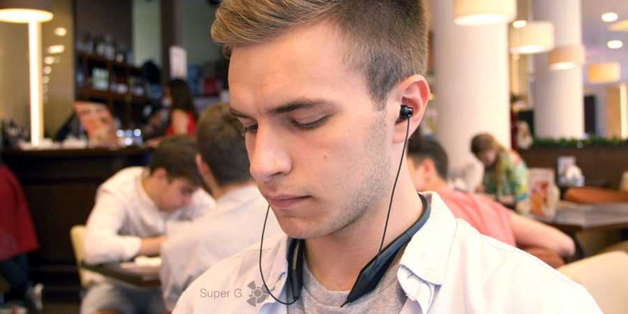 Внутри затычек — магниты. Если вынуть наушники из ушей, то они не болтаются в разные стороны при ходьбе, а более-менее спокойно лежат на груди.