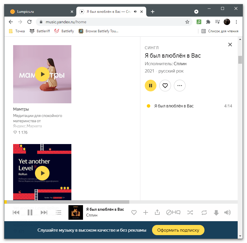 Если на компьютере нет подходящих файлов для проигрывания, ничего не помешает открыть тот же YouTube в браузере или любой сайт с музыкой, найдя там композицию для прослушивания.