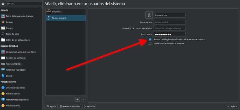Каждый дистрибутив Linux имеет свое приложение для настроек / предпочтений, поэтому я скажу это примерно (на основе Kubuntu). Заходим в Системные настройки / Диспетчер пользователей