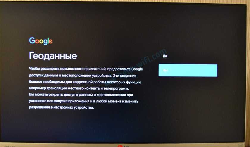 Дальше нам предложат выполнить вход в аккаунт Google. И я настоятельно рекомендую это сделать. Чтобы была возможность пользоваться всеми функциями. Автоматически будет выполнен вход в аккаунт YouTube. Так же вы сможете устанавливать приложения из Play Маркет. В принципе, этот шаг можно пропустить и зайти в свой аккаунт Google позже в настройках, но я рекомендую сделать это сразу.