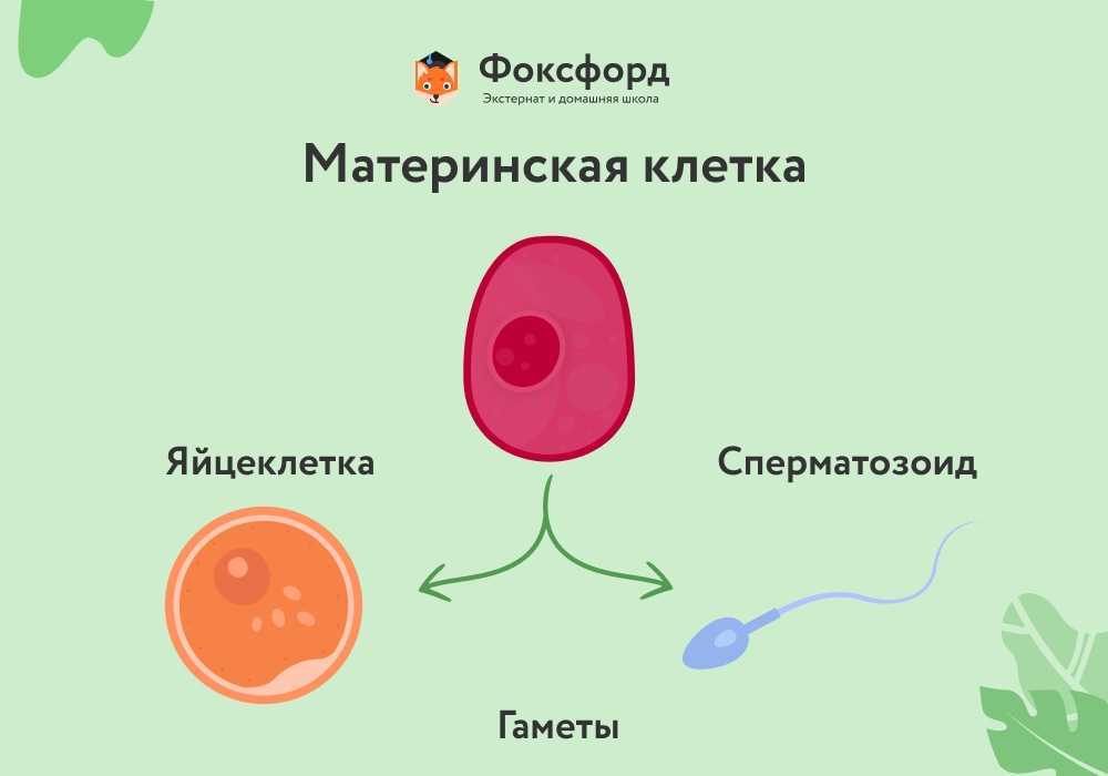 Второй способ деления эукариотической клетки — мейоз. Это процесс деления клетки, во время которого получаются дочерние клетки — гаметы. У мужчин это сперматозоид, а у женщин яйцеклетка. Гаметы получают только половину генетической информации родительской клетки. Число хромосом уменьшается в два раза.