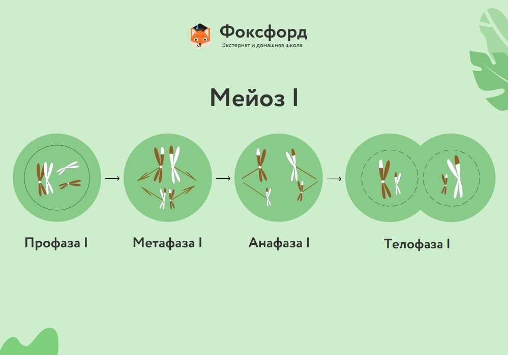 Мейоз I подразделяется на четыре фазы, аналогичные фазам митоза: