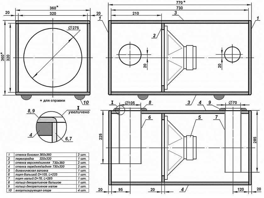 Фазоинвертор существенно более капризен к выбору параметров и настройке, поскольку выбору, под конкретный динамик, подлежат уже три параметра: объем ящика, поперечное сечение и длина тоннеля. Тоннель очень часто делают так, чтобы у уже готового сабвуфера можно было регулировать длину тоннеля, меняя частоту настройки.