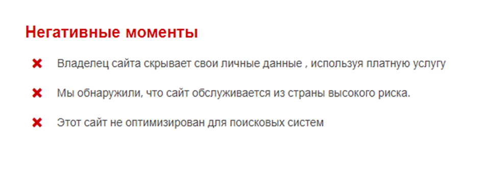 Сайт, сканирующий страницы на наличие мошенничества, нашел следующие отрицательные моменты: хозяин скрыл свои личные данные, используя для этого специальные программы, сайт появился недавно, и сайт не оптимизирован для поисковых систем.