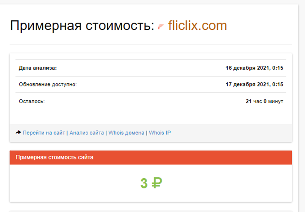 Аналитический проект оценивающий стоимость доменов указал цену детища аферистов в 3 рубля.