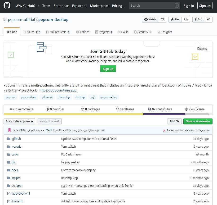 Репозиторий popcorn-desktop был в блокировке более трех недель
