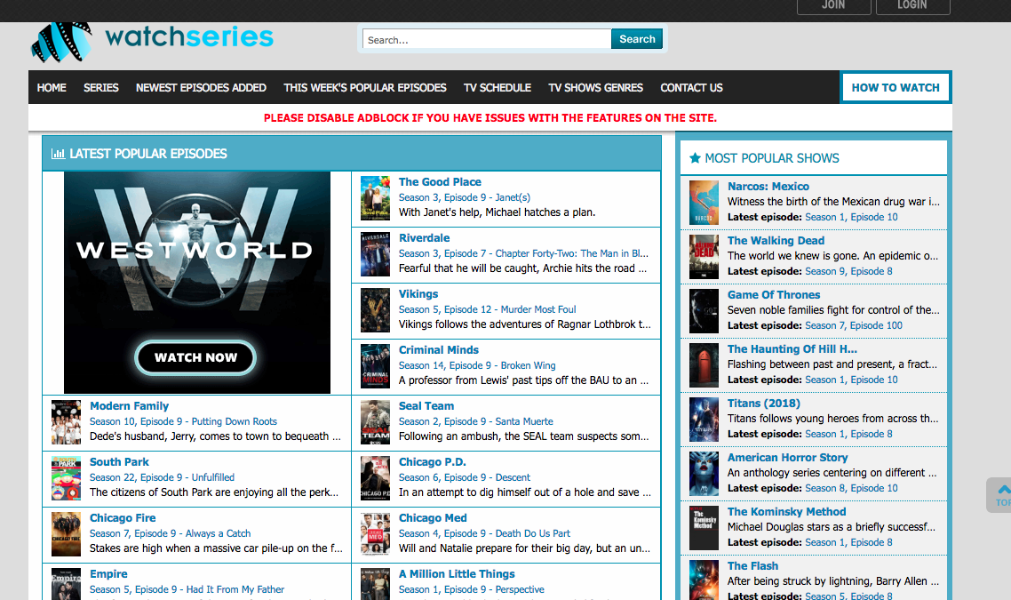 Этот веб-сайт чрезвычайно быстрый и отзывчивый. При этом, как и сайт Project Free TV, Watch Series отправляет вас на сторонние стриминговые сервисы, если вы захотите посмотреть выбранное видео. Здесь вам также нужно запастись терпением, поскольку не всегда первая же ссылка в списке оказывается рабочей.