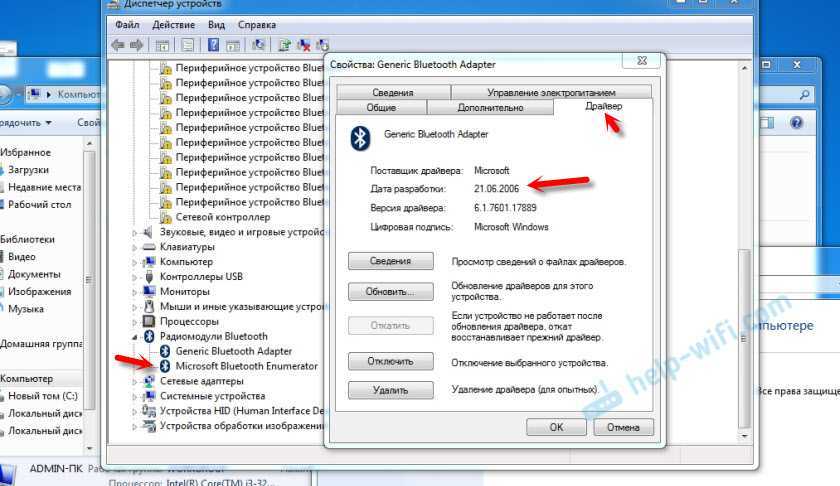 Обновил драйвер Bluetooth модуля. Зашел в диспетчер устройств, открыл свойства Generic Bluetooth Adapter и увидел, что драйвер еще от 2006 года. Который Windows 7 сама установила.