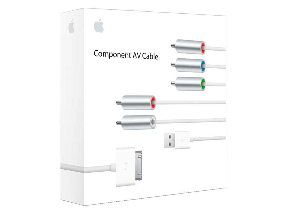 Компонентный AV шнур – чем-то похож на композитный кабель. Главное отличие заключается в наличии штекеров для синхронизации изображения и повышения качества транслируемой картинки. Также подходит для iPhone 3, 4, 4s.