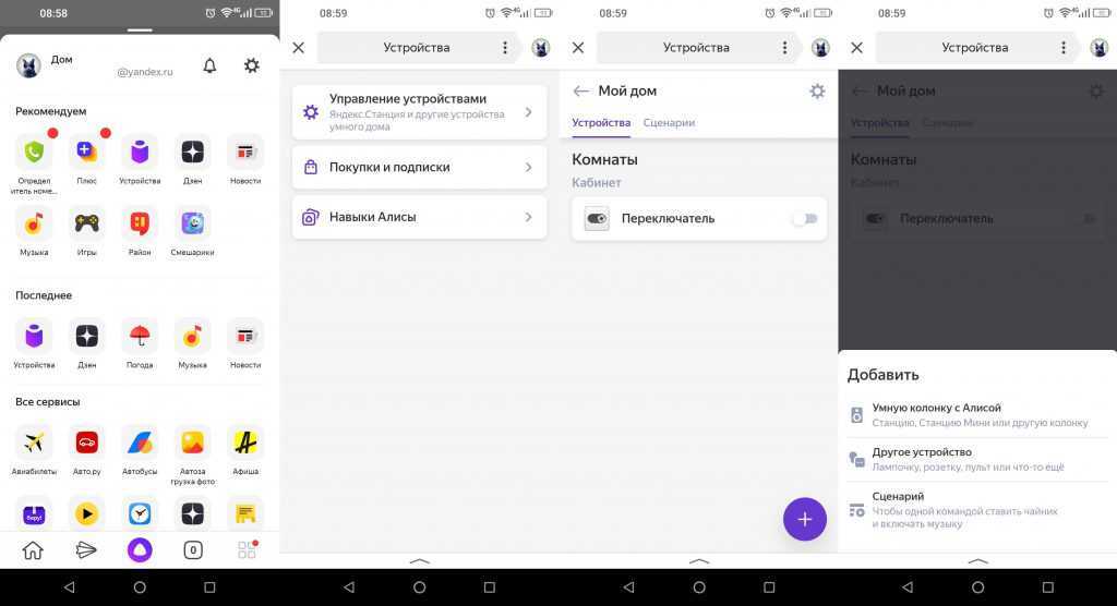 Теперь давайте подключим Яндекс Алису к управлению нашими умными устройствами Legrand. В списке сервисов приложения Яндекс выбираем Устройства и переходим в Управление устройствами. Далее жмем + в правом нижнем углу и выбираем Другое устройство.