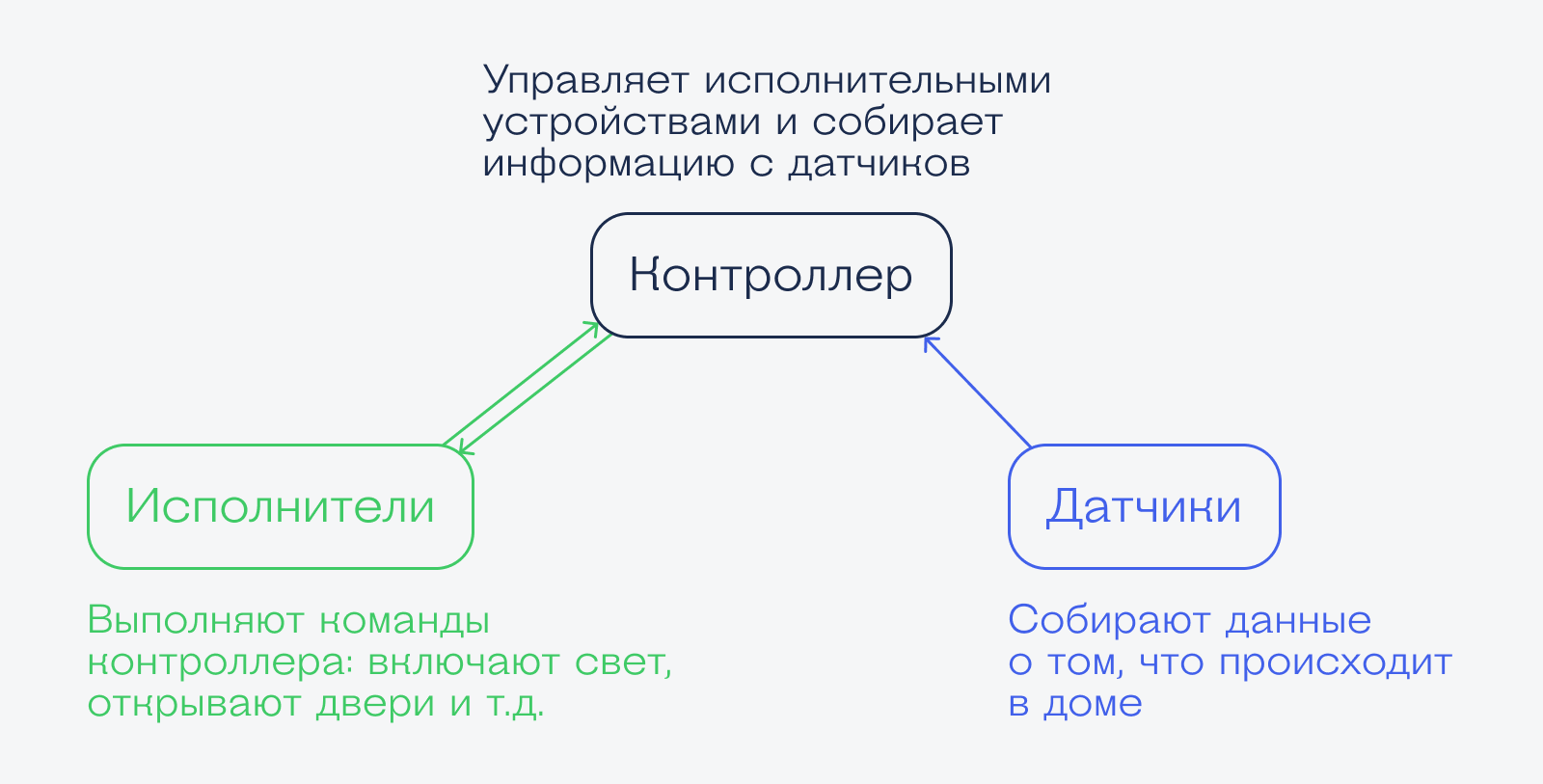 - Исполнительные устройства, или актуаторы, — именно они выполняют всё, что вы хотите: включают свет, запускают вентиляцию, открывают замки или открывают ворота, когда подъезжает машина.