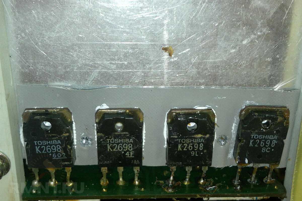 Конденсаторы обвязки ключей инвертора нужно поменять на элементы той же ёмкости и типа, но рассчитанные под более высокое напряжение (600–700 В);